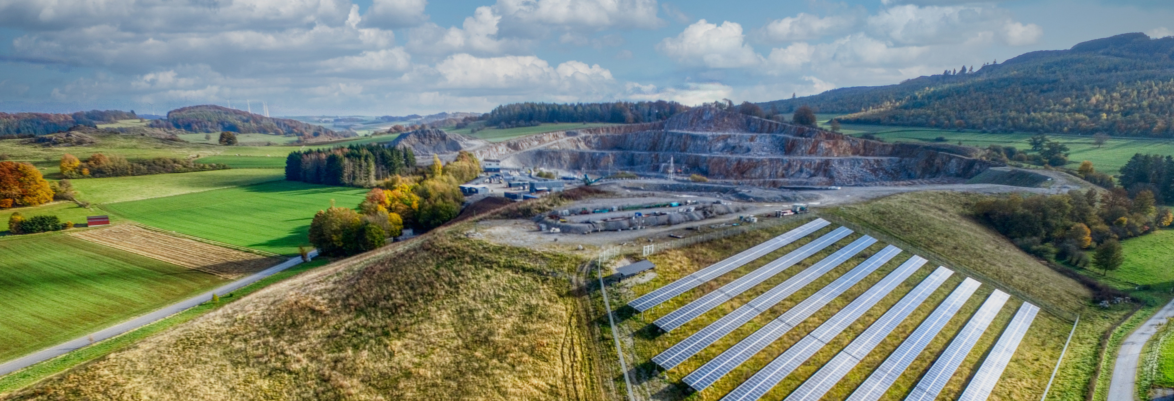 Ein besonders spannendes Projekt der Firma Spenner sticht nun hervor. Es handelt sich dabei um eine Photovoltaik-Anlage am Steinbruch in Brilon. Dort wird Kalkstein abgebaut und für die Herstellung von Branntkalk zum Standort nach Erwitte transportiert. Die Gewinnung von Kalkstein bedarf jedoch traditionell hoher Energieverbräuche, die vor allem für das Brechen des Kalksteins auf eine Korngröße von 25 – 75 mm benötigt wird. Bis ins Jahr 2019 wurden hierfür mobile Anlagen mit Dieseltreibstoff betrieben. Nun übernimmt eine moderne Sieb- und Brechanlage diesen Prozess, was zu einer enormen Effizienzsteigerung führt. Außerdem hat die neue Anlage ein deutlich moderneres Energiemanagement und wird in Gänze mit Strom betrieben. Die Stromversorgung erfolgt seit August 2021 vollständig aus der hauseigenen PV-Anlage, die direkt am Südhang des Steinbruchs errichtet wurde. Das Unternehmen investierte in dieses nachhaltige Projekt 600.000 Euro und produziert mit der rund 8.000 Quadratmeter großen PV-Anlage etwa 750 kWp oder 660.000 kWh Strom im Jahr, was dem Jahresverbrauch von 165 Vier-Personen-Haushalten entspricht. Der von der neuen Sieb- und Brechanlage benötigte Strom von 510.000 kWh im Jahr wird somit in der Netto-Betrachtung vollständig von der dazugehörigen PV-Anlage gespeist. Der überschüssige Strom kann sogar in das Netz eingespeist werden, sodass der Steinbruch der Firma Spenner in Brilon zum Netto-Stromerzeuger geworden ist. Für den Fall, dass die PV-Anlage nicht genügend Strom für den Betrieb der Anlage produziert, wird Strom aus dem allgemeinen Netz zugekauft. Alles in Allem können durch die neue Maschine in Kombination mit der PV-Anlage jährlich etwa 100.000 Liter Diesel eingespart werden, was 265 Tonnen CO2 entspricht.
