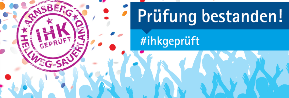 Die Fotowand in der IHK Arnsberg soll dazu einladen die Freude über die bestandene Prüfung zu teilen. Mit diesem passenden Hintergrundmotiv können die Fotos direkt über die sozialen Medien verbreitet werden. Bei den Prüfungen außerhalb der IHK Arnsberg werden entsprechende Roll-Ups aufgebaut.